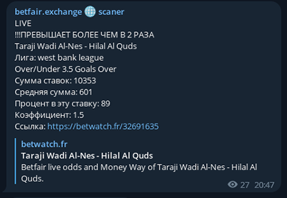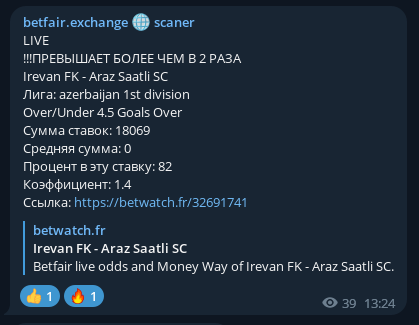 We see the flow of money only on the stock exchanges, in the bookmakers themselves we have money we do not see, but we see abnormal changes in coefficients and additional the changes by which bookmakers give themselves away, thereby giving us understand that the game is worth a lot of money.